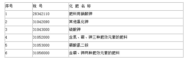 附件:進(jìn)口環(huán)節(jié)恢復(fù)征收增值稅的化肥稅號