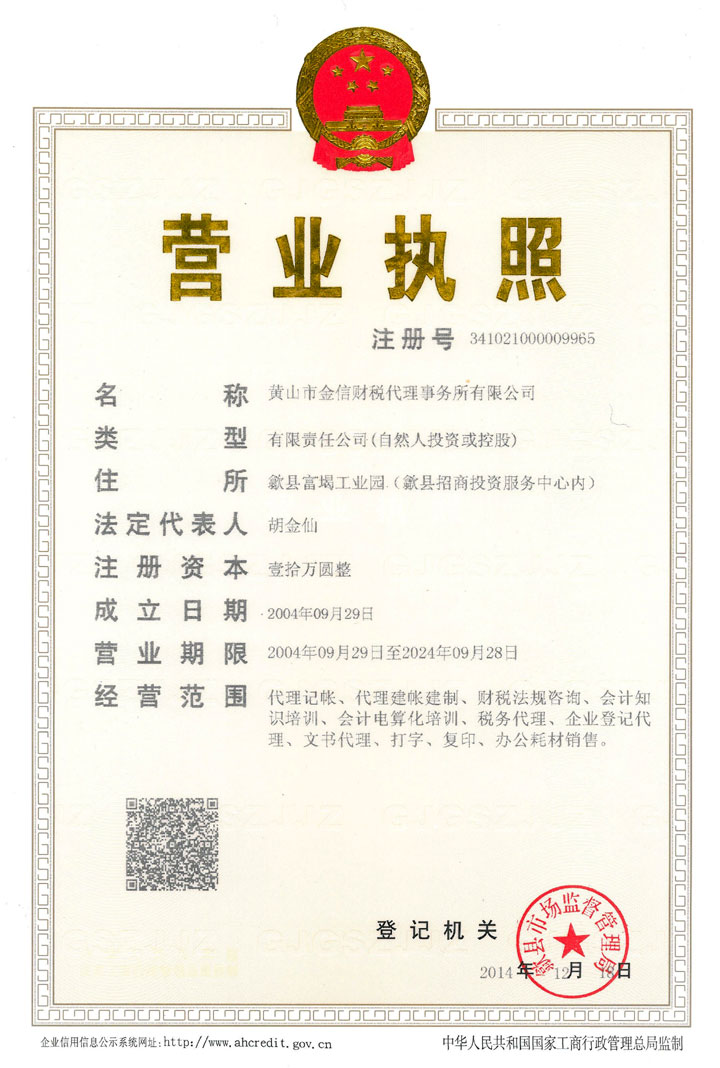 黃山市金信財稅代理事務所有限公司