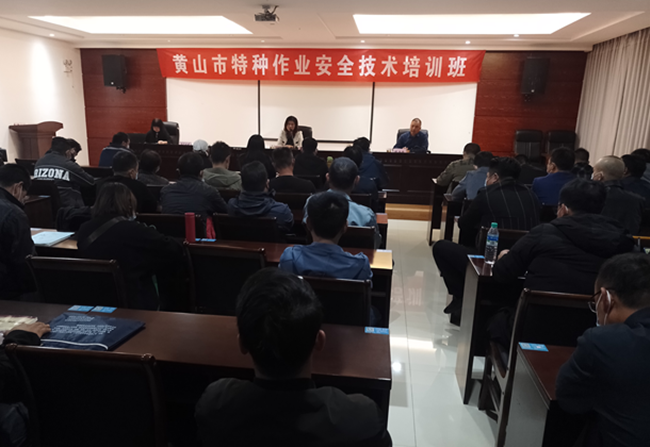 2022年10月30日,全市特種作業(高壓電工、低壓電工、焊接與熱切割、高處作業4個專業)安全技術培訓班在我中心順利開班。本次培訓班共有來自黃山區、徽州區、屯溪區、歙縣、休寧縣、祁門縣等6個區縣的學員99人,其中低壓電工39人,高處作業24人,焊接與熱切割21人,高壓電工15人。培訓采取線上學習+線下短期集中培訓的形式進行。黃山市應急管理局監察支隊楊平參加開班并做重要指導講話。培訓由正億公司張瀟老師主持。
