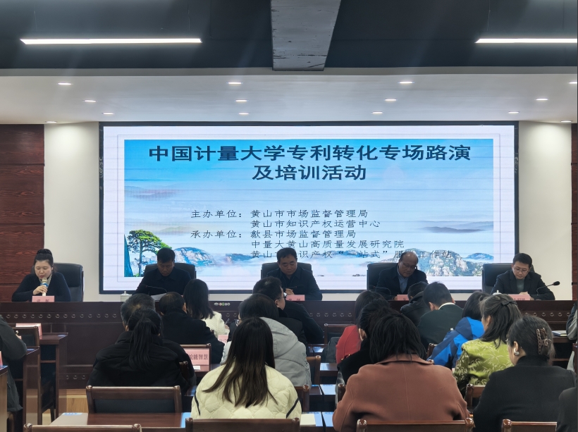 11月29日,中國計量大學專利轉(zhuǎn)化專場路演及培訓活動在黃山市知識產(chǎn)權(quán)“一站式”服務(wù)工作站(安徽香寧眾創(chuàng)科技服務(wù)有限公司)舉辦。黃山市市場監(jiān)督管理局(知識產(chǎn)權(quán)局)黨組成員、副局長黃劍,黃山市市場監(jiān)管局黨組成員、副局長張妮,歙縣市場監(jiān)督管理局黨組書記、局長江志偉以及全市知識產(chǎn)權(quán)行政管理人員和相關(guān)企業(yè)參加活動。