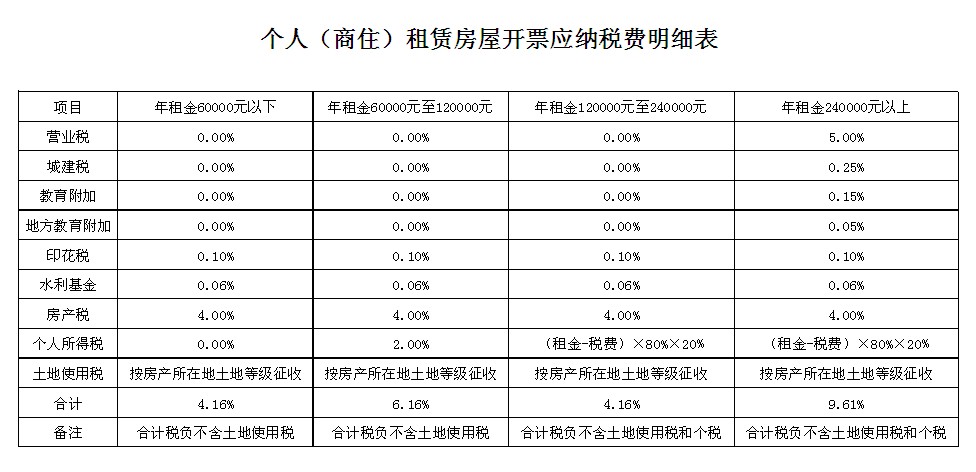 地稅開票各稅率表